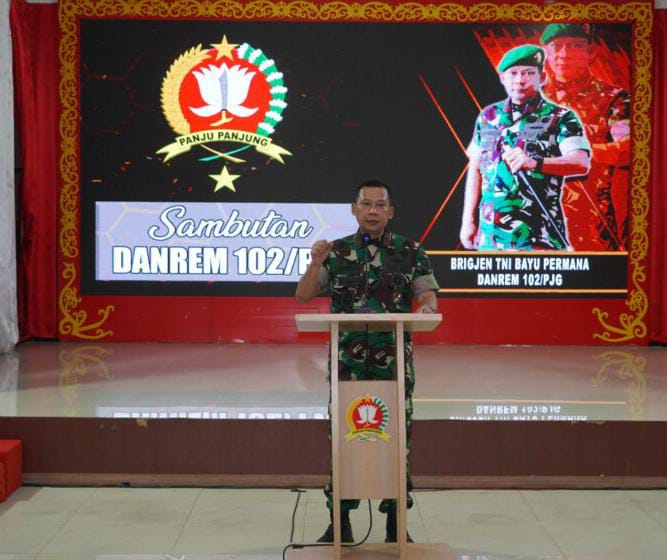 Di momen ini, Komandan Korem (Danrem) 102/Panju Panjung (Pjg) Brigjen TNI Bayu Permana turut mengucapkan Dirgahayu kepada satuan dibawah komando langsung Panglima TNI ini.