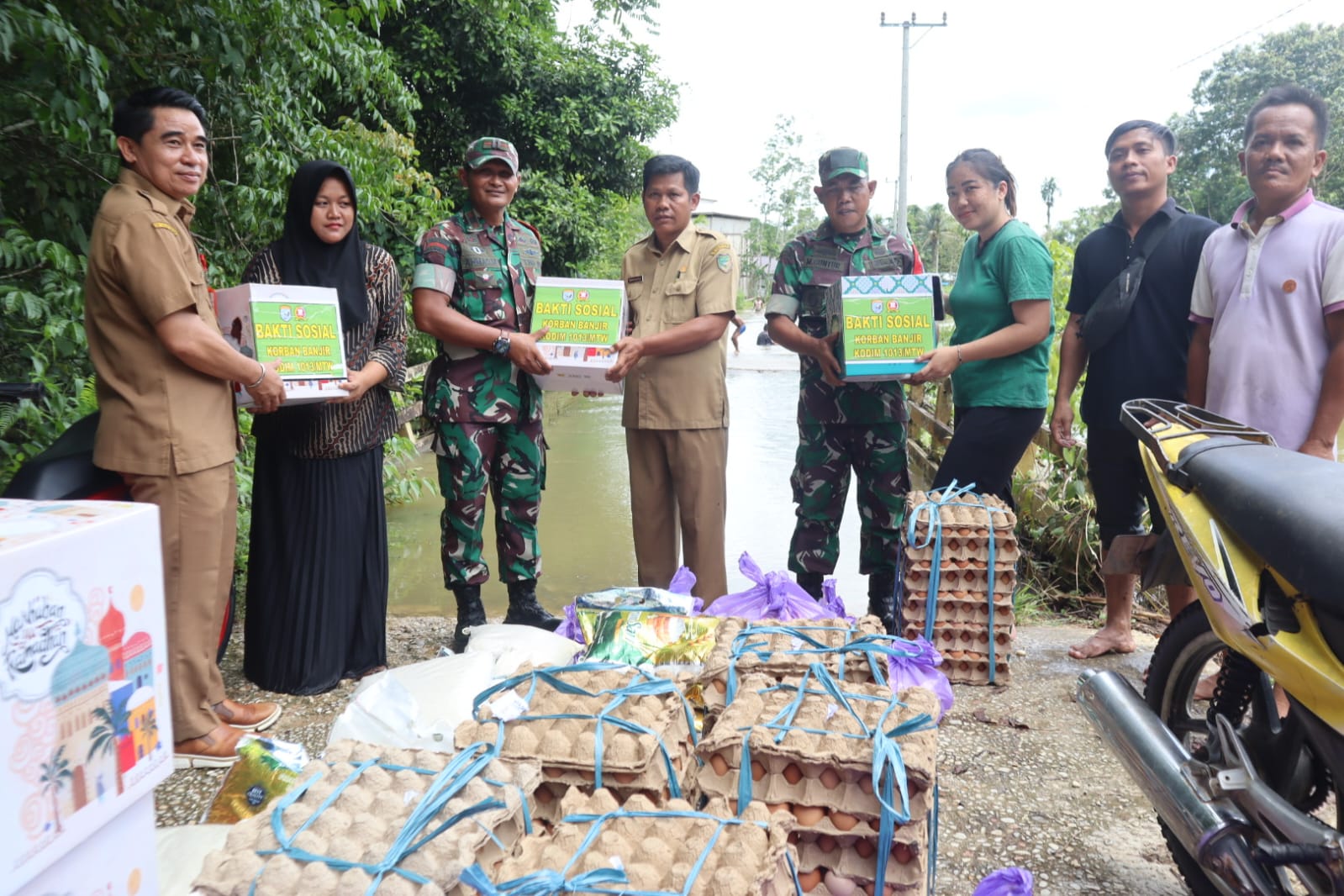 Peduli, Kodim 1013/Mtw dan BPBD Salurkan Bantuan Sosial Kepada Warga Terdampak Banjir Desa Sei Rahayu I