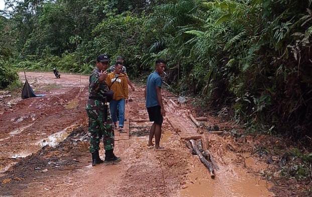 Perbaiki Jembatan, Babinsa Rungan Bangun Semangat Gotong Royong di Wilayah Binaan