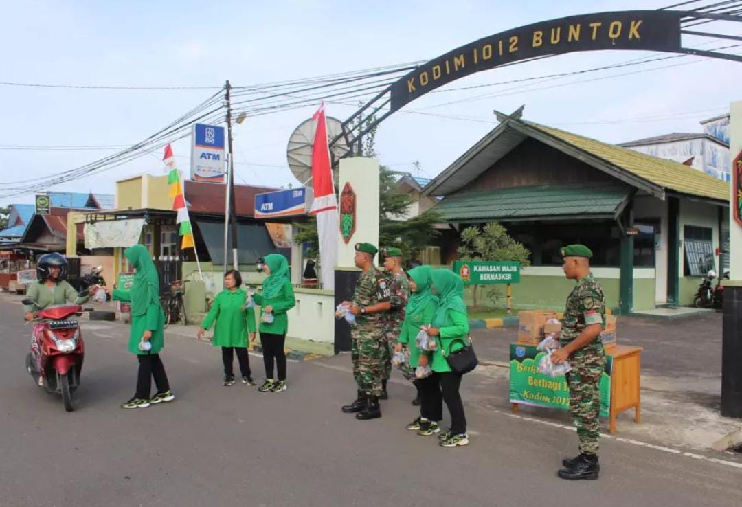 BUNTOK, Kalteng.co – Dibulan Ramadan yang penuh berkah, Anggota Kodim 1012/Buntok (Btk) bersama Persit KCK Cabang XXXVIII DIM 1012 Koorcab Rem 102 PD XII/Tanjungpura (Tpr) bagikan ratusan paket takjil ke pengguna jalan yang melintas di depan Makodim 1012/Btk, Jalan Pelita Raya, Kab. Barito Selatan (Barsel), Jumat (07/04/2023).